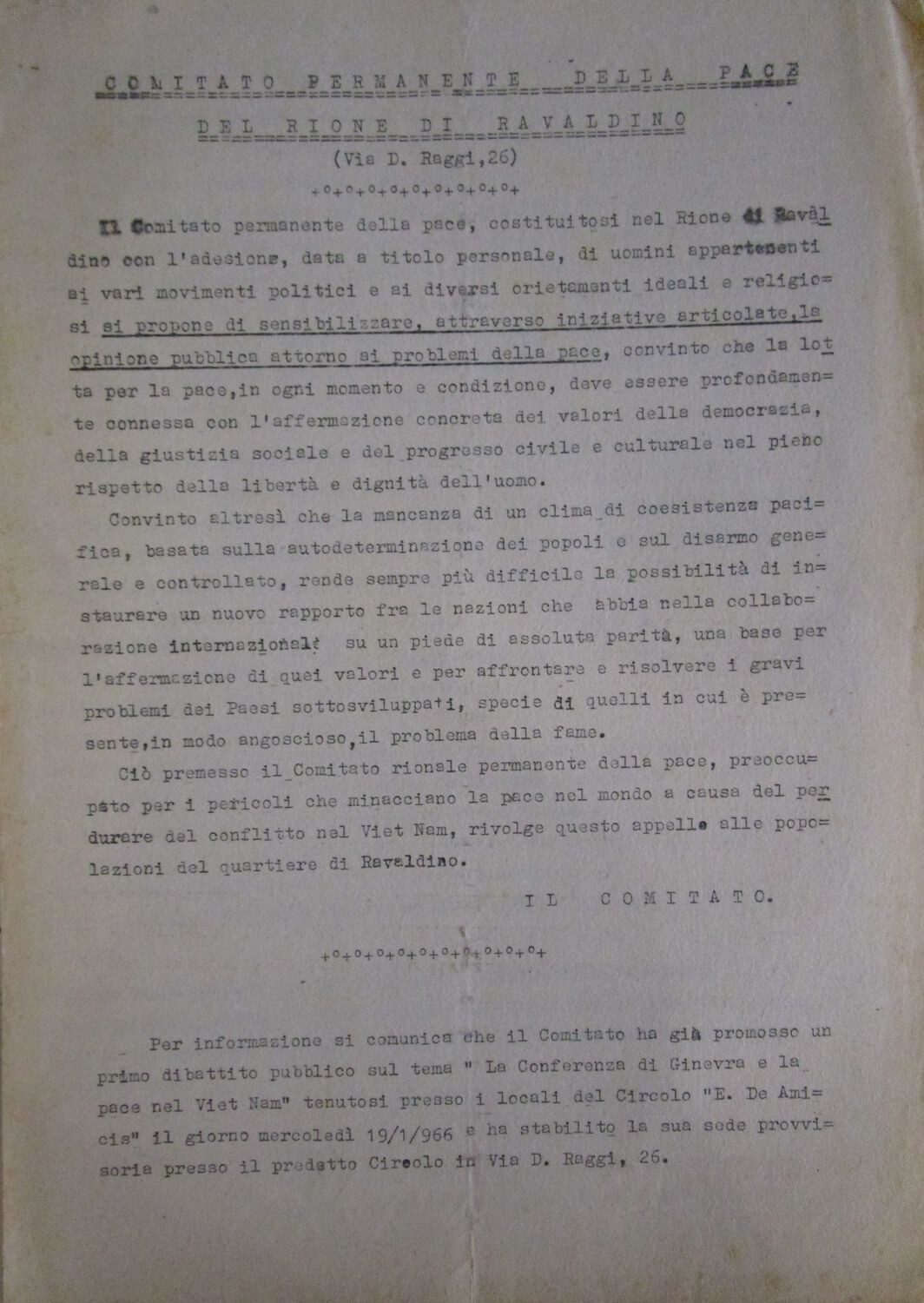 PARTECIPARE LA DEMOCRAZIALa Casa del Popolo “Edmondo De Amicis” è una delle più antiche del forlivese, fondata nel 1908 dai militanti socialisti del popolare rione cicorstante. Ben presto nota come “Il Camerone” per le sue ampie dimensioni, la Casa del Popolo ospita un Circolo socialista, locali per lo svolgimento del gioco delle bocce e le feste danzanti ed è teatro di corsi di alfabetizzazione.